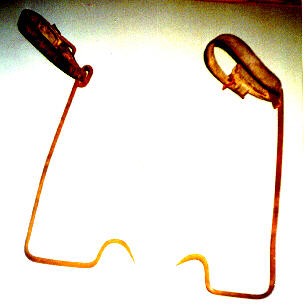 Blacksmiths made both types of climbers and therefore there are many variations in style as you can see in the photos below. I have acquired a civil war era set of climbers from a barn in Wisconsin, the iron is still solid but most of the leather has fallen off.